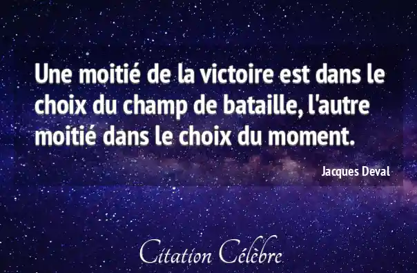 Une moitié de la victoire est dans le choix du champ de bataille, l'autre moitié dans le choix du moment.
