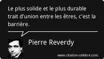 Le plus solide et le plus durable trait d'union entre les êtres, c'est la barrière.