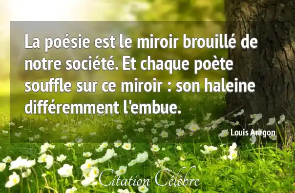 La poésie est le miroir brouillé de notre société. Et chaque poète souffle sur ce miroir : son haleine différemment l'embue.