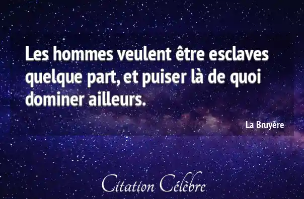 Les hommes veulent être esclaves quelque part, et puiser là de quoi dominer ailleurs.