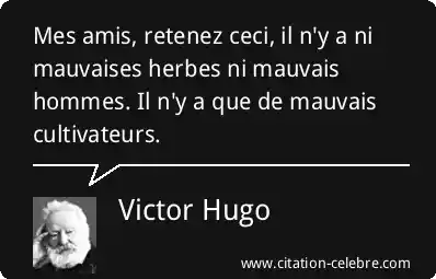 Mes amis, retenez ceci, il n'y a ni mauvaises herbes ni mauvais hommes. Il n'y a que de mauvais cultivateurs.