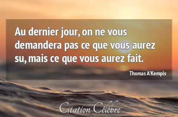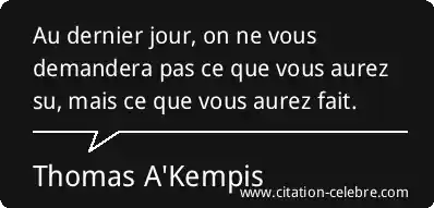 Au dernier jour, on ne vous demandera pas ce que vous aurez su, mais ce que vous aurez fait.