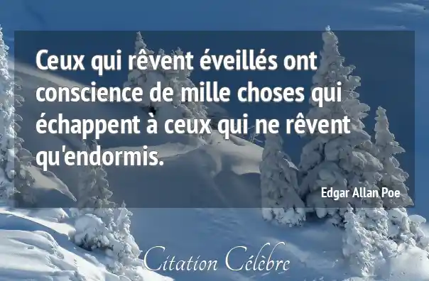Ceux qui rêvent éveillés ont conscience de mille choses qui échappent à ceux qui ne rêvent qu'endormis.