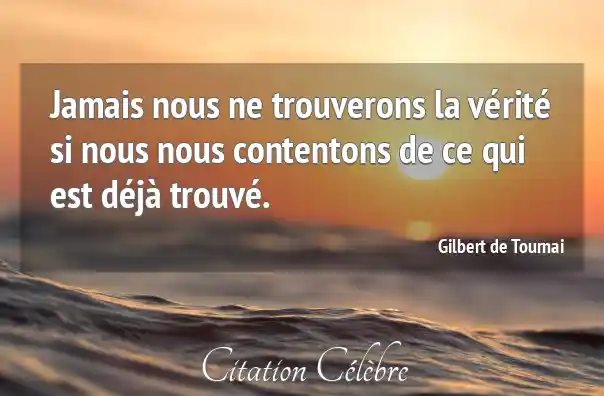 Jamais nous ne trouverons la vérité si nous nous contentons de ce qui est déjà trouvé.