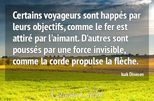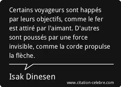 Certains voyageurs sont happés par leurs objectifs, comme le fer est attiré par l'aimant. D'autres sont poussés par une force invisible, comme la corde propulse la flèche.