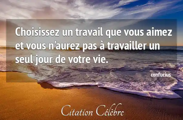 - L'Alignement Personnel : La citation encourage à chercher un métier en accord avec vos valeurs, vos talents naturels et vos aspirations profondes. Un travail choisi par cœur est souvent synonyme d'authenticité.