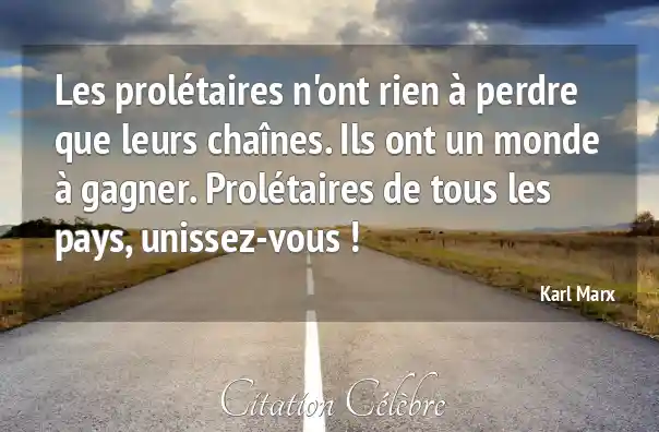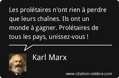 Les prolétaires n'ont rien à perdre que leurs chaînes. Ils ont un monde à gagner. Prolétaires de tous les pays, unissez-vous !
