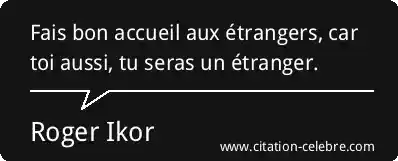 Fais bon accueil aux étrangers, car toi aussi, tu seras un étranger.