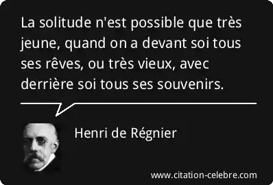 La solitude n'est possible que très jeune, quand on a devant soi tous ses rêves, ou très vieux, avec derrière soi tous ses souvenirs.