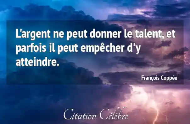 L'argent ne peut donner le talent, et parfois il peut empêcher d'y atteindre.