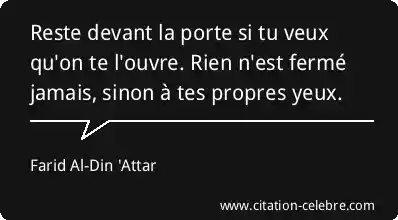 Reste devant la porte si tu veux qu'on te l'ouvre. Rien n'est fermé jamais, sinon à tes propres yeux.