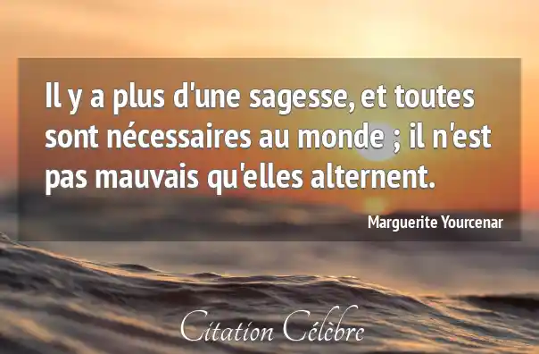 Il y a plus d'une sagesse, et toutes sont nécessaires au monde ; il n'est pas mauvais qu'elles alternent.