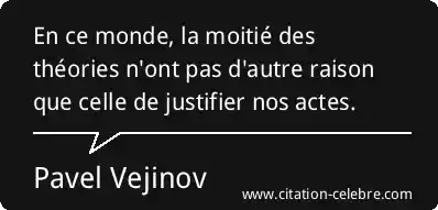 En ce monde, la moitié des théories n'ont pas d'autre raison que celle de justifier nos actes.