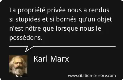 La propriété privée nous a rendus si stupides et si bornés qu'un objet n'est nôtre que lorsque nous le possédons.