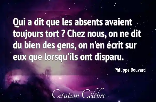 Qui a dit que les absents avaient toujours tort ? Chez nous, on ne dit du bien des gens, on n'en écrit sur eux que lorsqu'ils ont disparu.