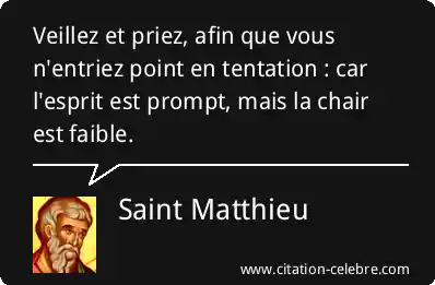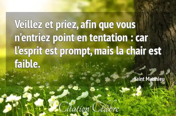 Veillez et priez, afin que vous n'entriez point en tentation : car l'esprit est prompt, mais la chair est faible.