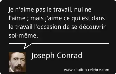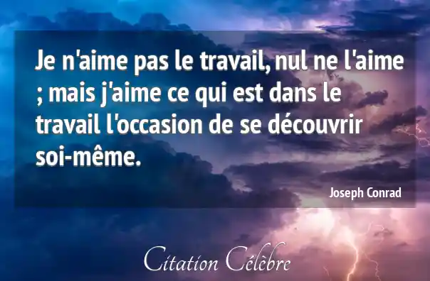 Je n'aime pas le travail, nul ne l'aime ; mais j'aime ce qui est dans le travail l'occasion de se découvrir soi-même.