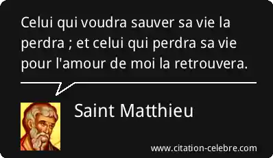 Celui qui voudra sauver sa vie la perdra ; et celui qui perdra sa vie pour l'amour de moi la retrouvera.
