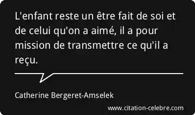 L'enfant reste un être fait de soi et de celui qu'on a aimé, il a pour mission de transmettre ce qu'il a reçu.