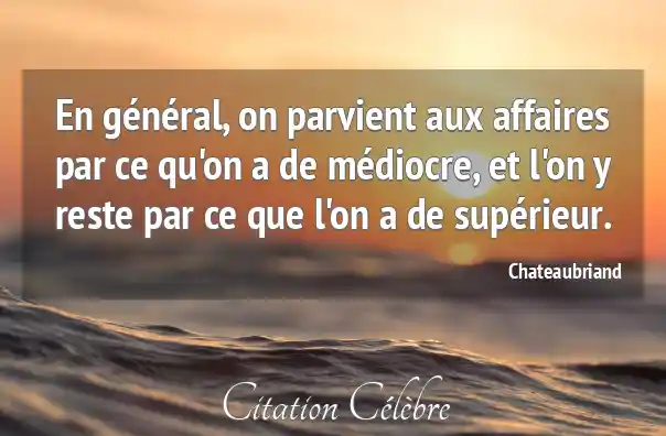 En général, on parvient aux affaires par ce qu'on a de médiocre, et l'on y reste par ce que l'on a de supérieur.