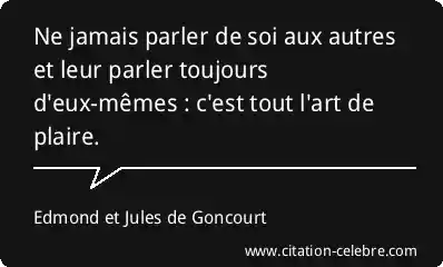 Ne jamais parler de soi aux autres et leur parler toujours d'eux-mêmes : c'est tout l'art de plaire.