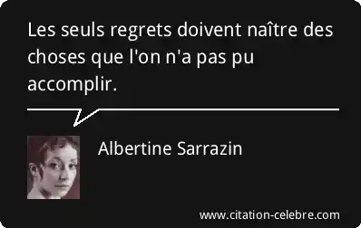 Les seuls regrets doivent naître des choses que l'on n'a pas pu accomplir.