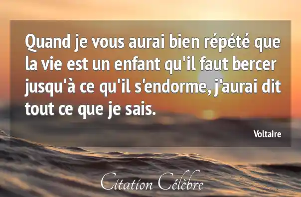 Quand je vous aurai bien répété que la vie est un enfant qu'il faut bercer jusqu'à ce qu'il s'endorme, j'aurai dit tout ce que je sais.