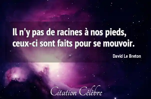Il n'y pas de racines à nos pieds, ceux-ci sont faits pour se mouvoir.