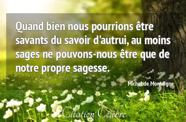 Citation Michel de Montaigne bien : Quand bien nous pourrions être savants du savoir d'autrui, au...