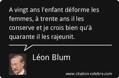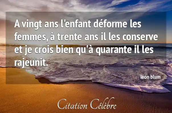 A vingt ans l'enfant déforme les femmes, à trente ans il les conserve et je crois bien qu'à quarante il les rajeunit.