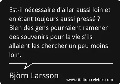 Est-il nécessaire d'aller aussi loin et en étant toujours aussi pressé ? Bien des gens pourraient ramener des souvenirs pour la vie s'ils allaient les chercher un peu moins loin.