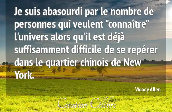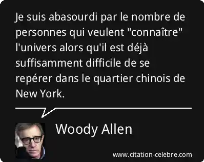 Je suis abasourdi par le nombre de personnes qui veulent "connaître" l'univers alors qu'il est déjà suffisamment difficile de se repérer dans le quartier chinois de New York.
