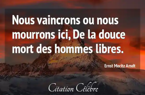 Nous vaincrons ou nous mourrons ici, De la douce mort des hommes libres.