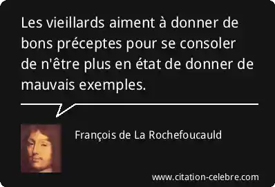 Les vieillards aiment à donner de bons préceptes pour se consoler de n'être plus en état de donner de mauvais exemples.