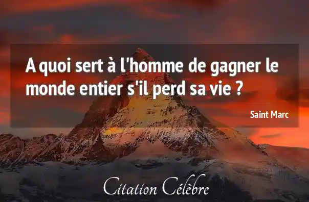 A quoi sert à l'homme de gagner le monde entier s'il perd sa vie ?
