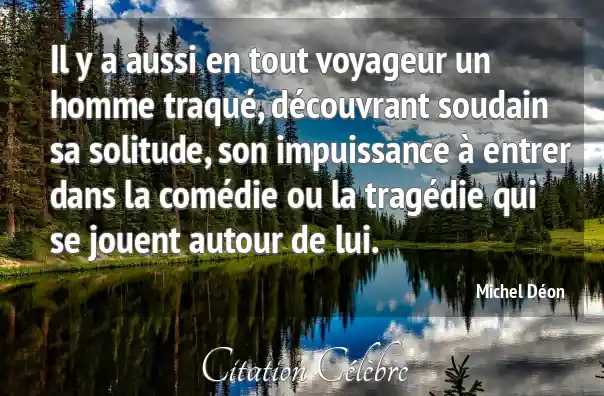 Il y a aussi en tout voyageur un homme traqué, découvrant soudain sa solitude, son impuissance à entrer dans la comédie ou la tragédie qui se jouent autour de lui.