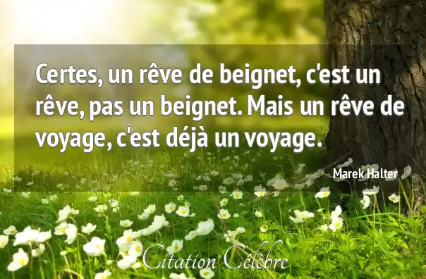 Certes, un rêve de beignet, c'est un rêve, pas un beignet. Mais un rêve de voyage, c'est déjà un voyage.