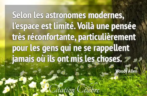 Selon les astronomes modernes, l'espace est limité. Voilà une pensée très réconfortante, particulièrement pour les gens qui ne se rappellent jamais où ils ont mis les choses.