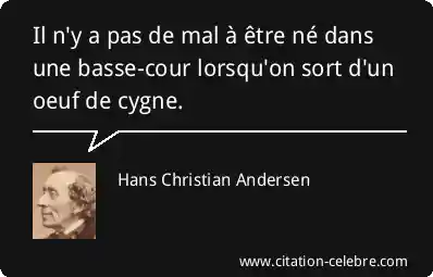 Il n'y a pas de mal à être né dans une basse-cour lorsqu'on sort d'un oeuf de cygne.