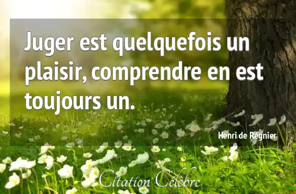 Juger est quelquefois un plaisir, comprendre en est toujours un.