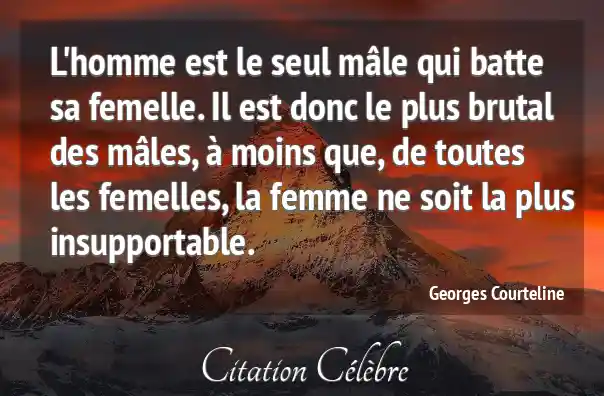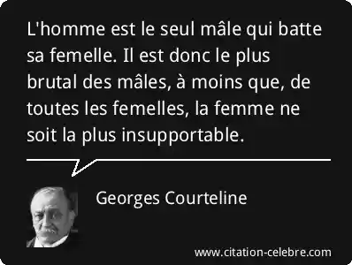L'homme est le seul mâle qui batte sa femelle. Il est donc le plus brutal des mâles, à moins que, de toutes les femelles, la femme ne soit la plus insupportable.