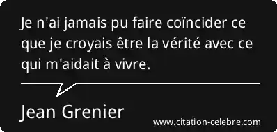 Je n'ai jamais pu faire coïncider ce que je croyais être la vérité avec ce qui m'aidait à vivre.