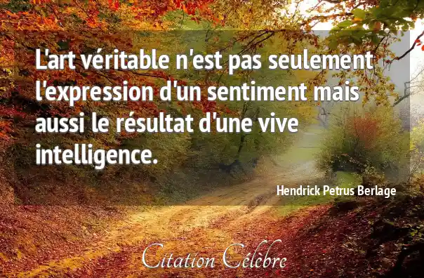 L'art véritable n'est pas seulement l'expression d'un sentiment mais aussi le résultat d'une vive intelligence.
