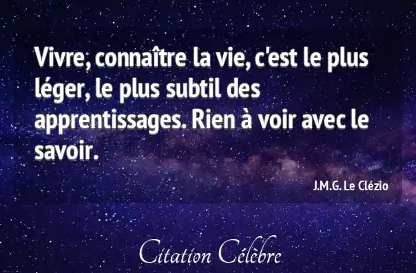 Vivre, connaître la vie, c'est le plus léger, le plus subtil des apprentissages. Rien à voir avec le savoir.