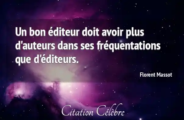 Un bon éditeur doit avoir plus d'auteurs dans ses fréquentations que d'éditeurs.