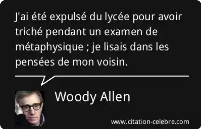 J'ai été expulsé du lycée pour avoir triché pendant un examen de métaphysique ; je lisais dans les pensées de mon voisin.
