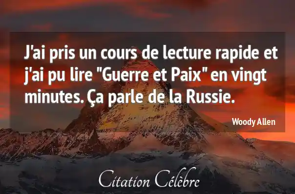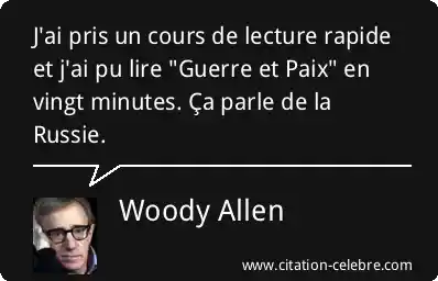 J'ai pris un cours de lecture rapide et j'ai pu lire "Guerre et Paix" en vingt minutes. Ça parle de la Russie.
