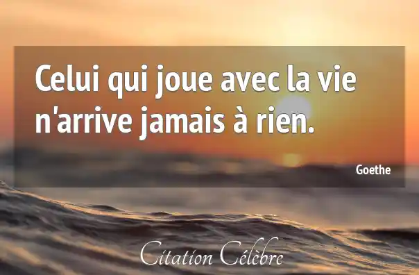 Celui qui joue avec la vie n'arrive jamais à rien.