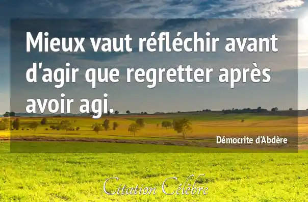 Mieux vaut réfléchir avant d'agir que regretter après avoir agi.