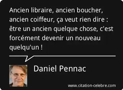 Ancien libraire, ancien boucher, ancien coiffeur, ça veut rien dire : être un ancien quelque chose, c'est forcément devenir un nouveau quelqu'un !